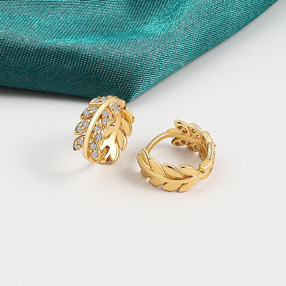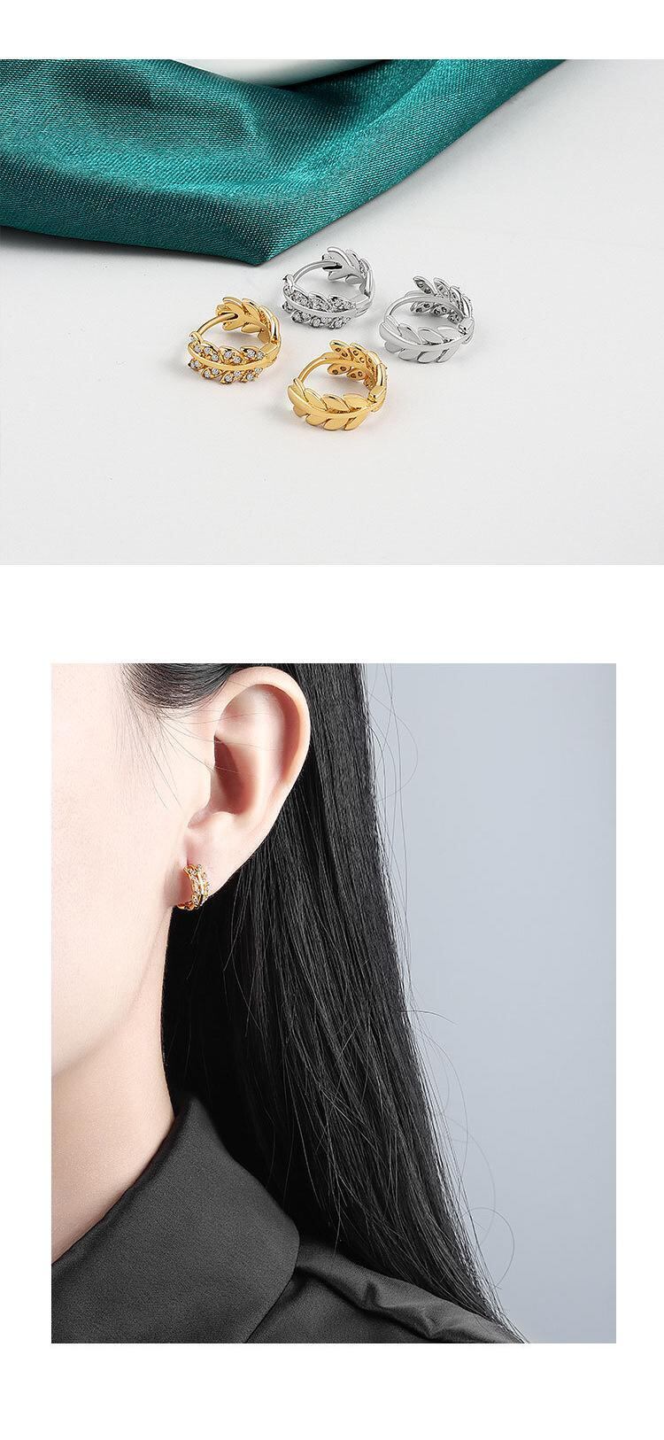 LIVVY シルバーカラー ホット リーフ ジルコン フープ イヤリング シンプル - エンド ゴージャス ジュエリー ギフト 指輪 銀 Liv97176246973