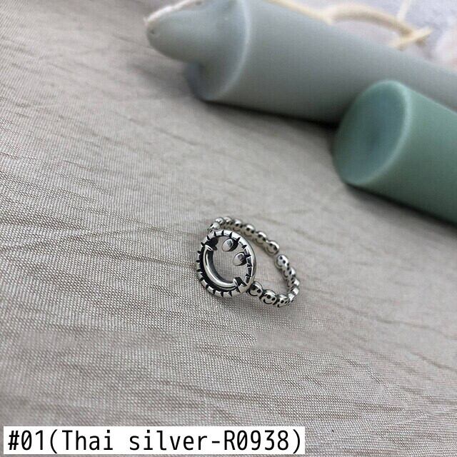 LIVVY タイシルバーカラー Tel チェーンビーズダブルオープンリング女性男性中空面白い笑顔パーティージュエリーギフト 指輪 銀 Liv83907049357