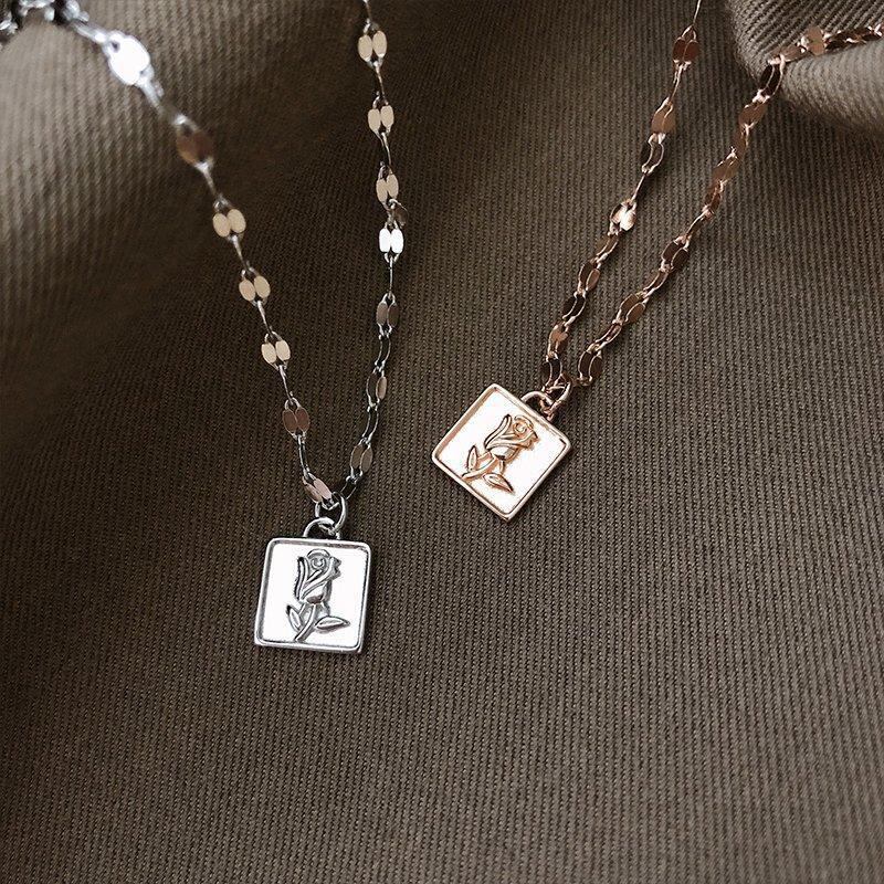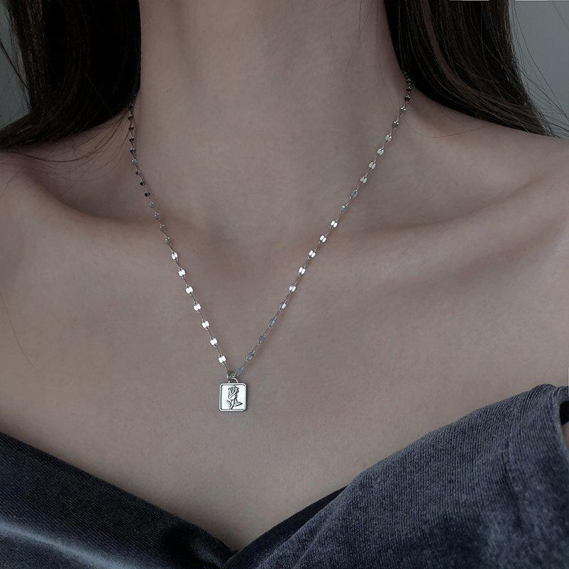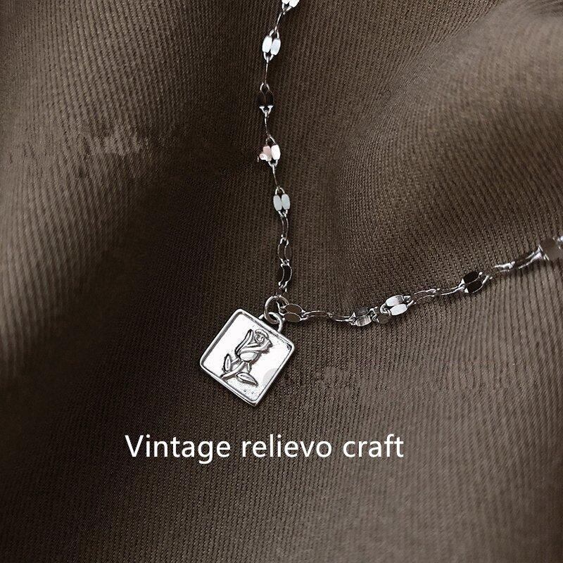 LIVVY シャイニー 長方形 ペンダント ネックレス レリーフ 花 シンプル 鎖骨 チェーン 気質 ギフト レース フラワーデザイン Liv59251324523