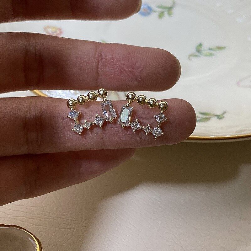 LIVVY シルバーカラーのシンプルなクリスタルジルコンスクエアスタッドピアス女性のクリエイティブな幾何学ジュエリー イヤリング リング 指輪 銀 スクウェア Liv73093753268