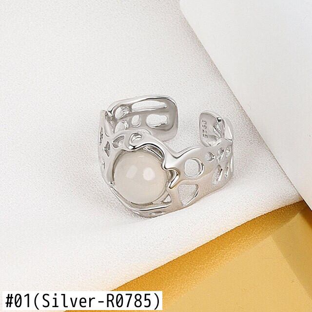 LIVVY 不規則な中空ワイドリング女性シルバーカラーオープニングホワイトクリスタルジュエリートレンディなパーティーギフト 指輪 銀 Liv90372739050