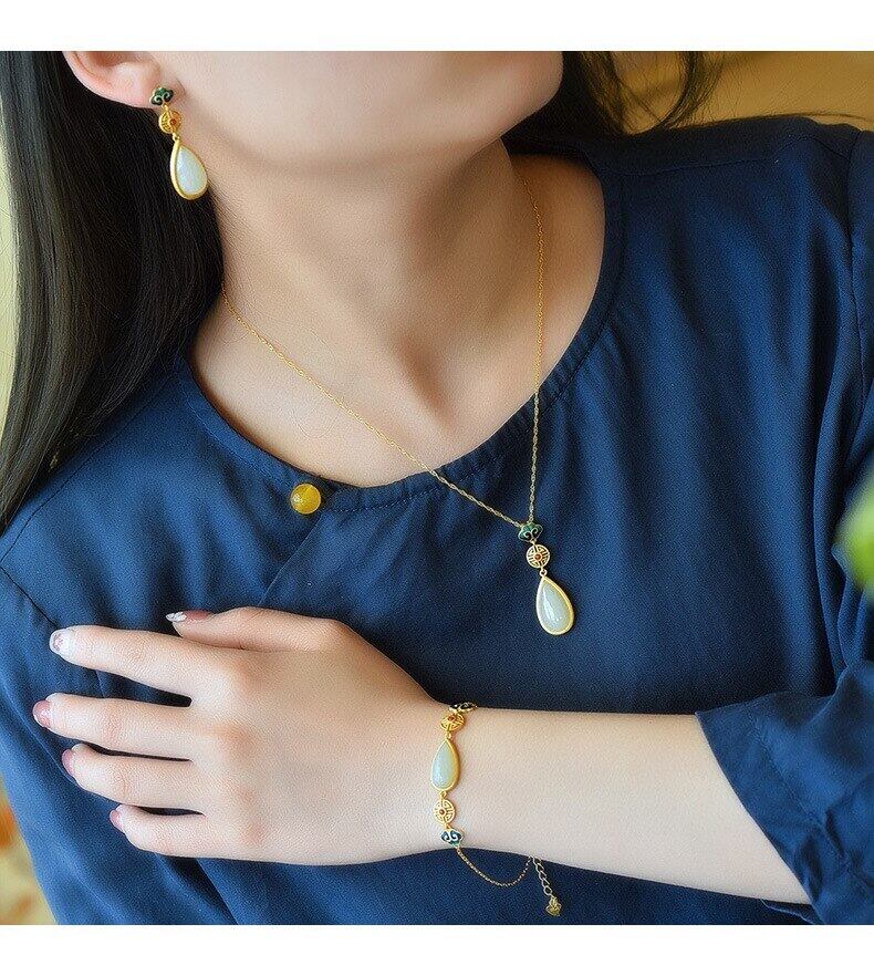 LIVVY トレンディな天然水晶石水の形のユニークなクラフトイヤリング女性中国風少数民族ジュエリー ナチュラル 指輪 Liv23297167104