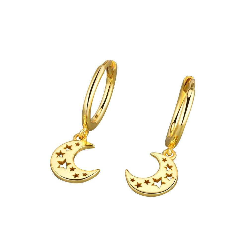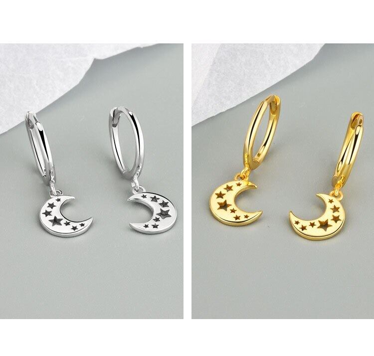 LIVVY シルバーカラームーン中空アウト星形ペンダントイヤリングフレンチライト高級パンクパーティージュエリーギフト 指輪 銀 Liv57931444622