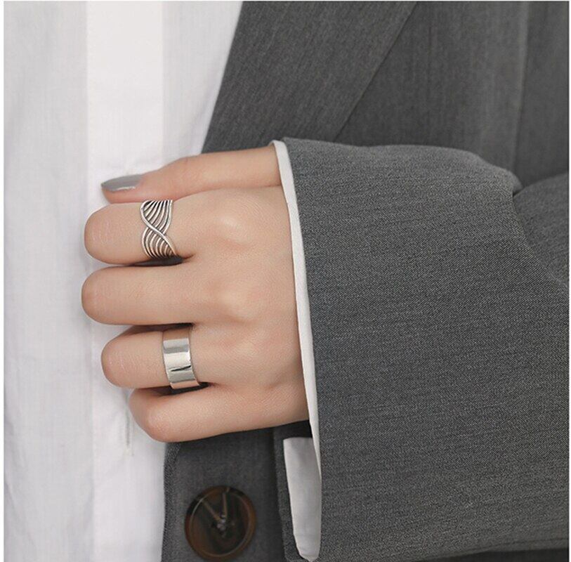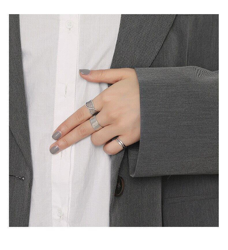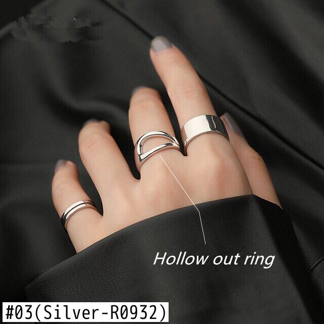 LIVVY シルバーカラースムーズワイドリングトレンディな多層ライン中空幾何学パーティージュエリーギフト女性 マルチレイヤー 指輪 銀 Liv90291598960