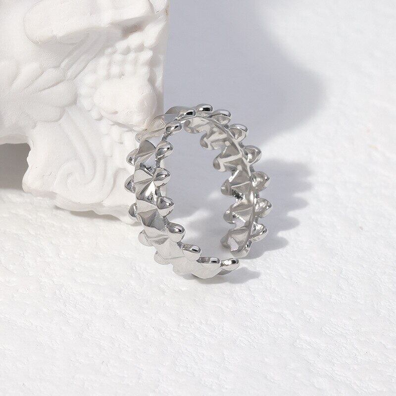 LIVVY シルバーカラーの指輪カップルシンプルな不規則なパターンの幾何学的な手作りの女性のパーティージュエリー リング 銀 Liv46005069494