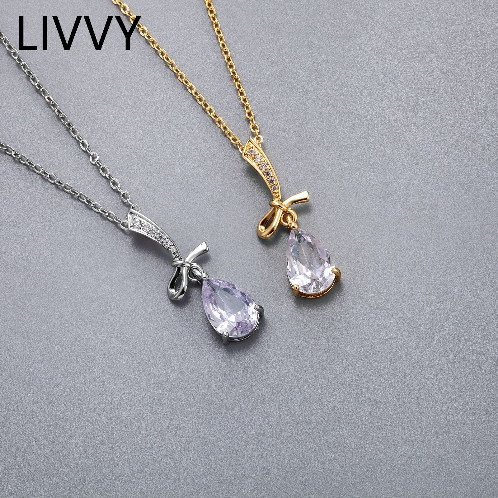 LIVVY シルバーカラー水はクリスタルペンダントネックレス女性ガールウェディングジュエリーアクセサリー レース 銀 Liv38357520847