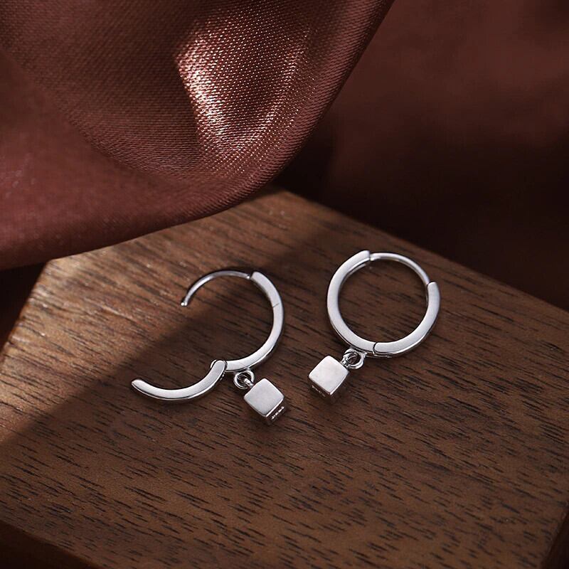 LIVVY シルバーカラー幾何学スクエアペンダントイヤリングチャーム女性シンプルさイヤリングジュエリーギフト 指輪 銀 スクウェア Liv45371145464