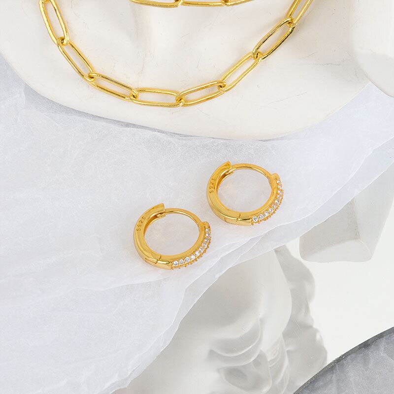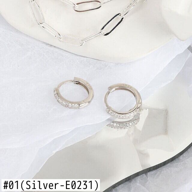 LIVVY シルバーカラー インレイ ジルコン ラウンド フープ イヤリング シンプル 絶妙 ジュエリー アクセサリー 指輪 銀 Liv50295619553