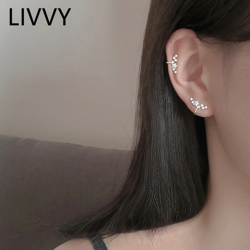 LIVVY シルバー色 ly 到着スタークリスタルジルコン耳クリップイヤリングチャーム女性ジュエリーパーティーアクセサリー 指輪 銀 Liv66159174098