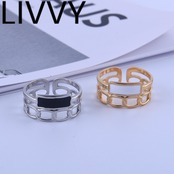 LIVVY シルバーカラートレンディワイドリング女性シンプルな手作り黒、白石指ジュエリーパンクパーティーギフト ホワイト ブラック 指輪 銀 Liv46755992885