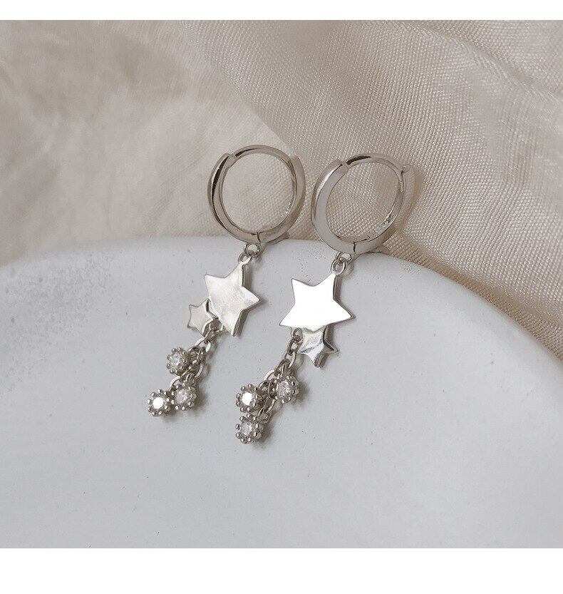 LIVVY 2021 Arriva シルバーカラー夏星型ジルコン耳飾りイヤリング女性ガールトレンディなシンプルな誕生日パーティージュエリー サマー 夏物 指輪 銀 Liv98380578227
