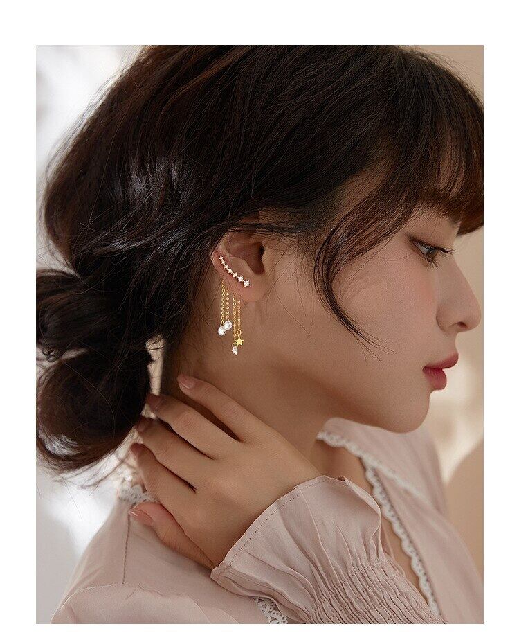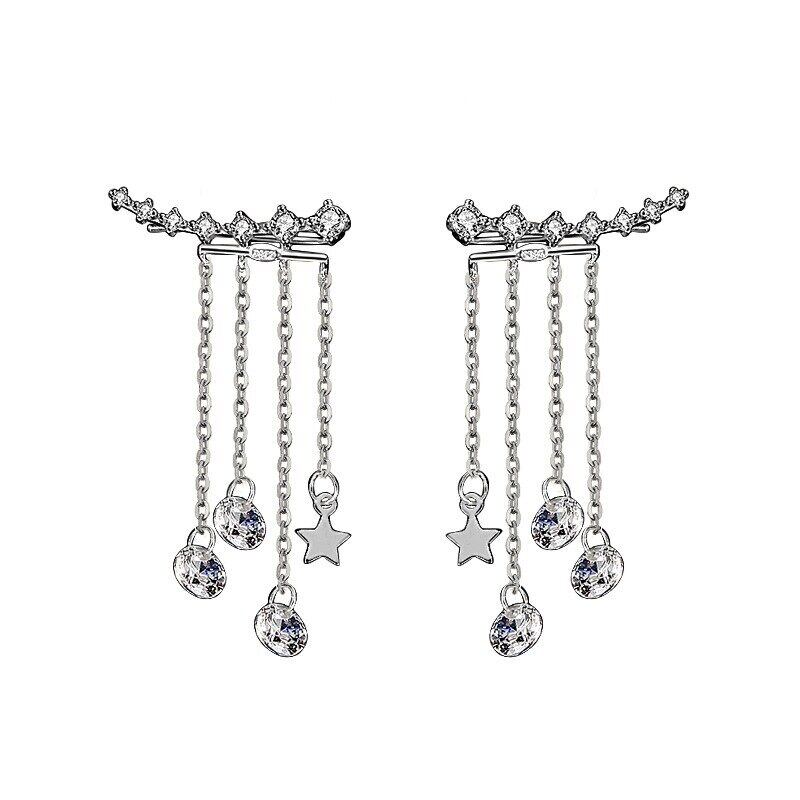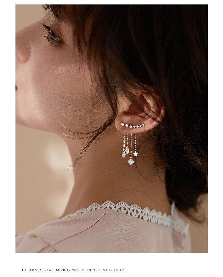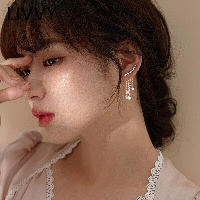 LIVVY シルバーカラー多層 Tel ジルコン星型イヤリング女性ライト高級エレガンス気質トレンディなジュエリー 銀 Liv20352277788