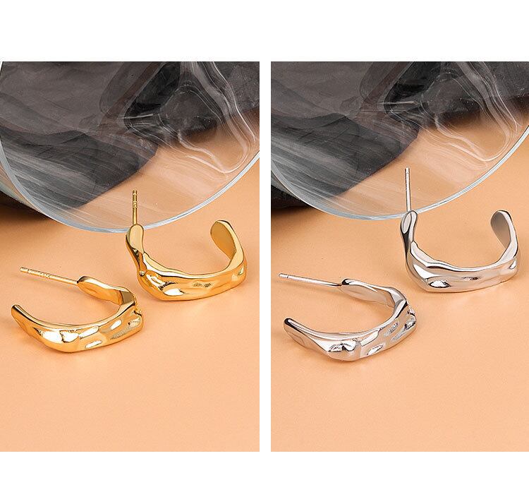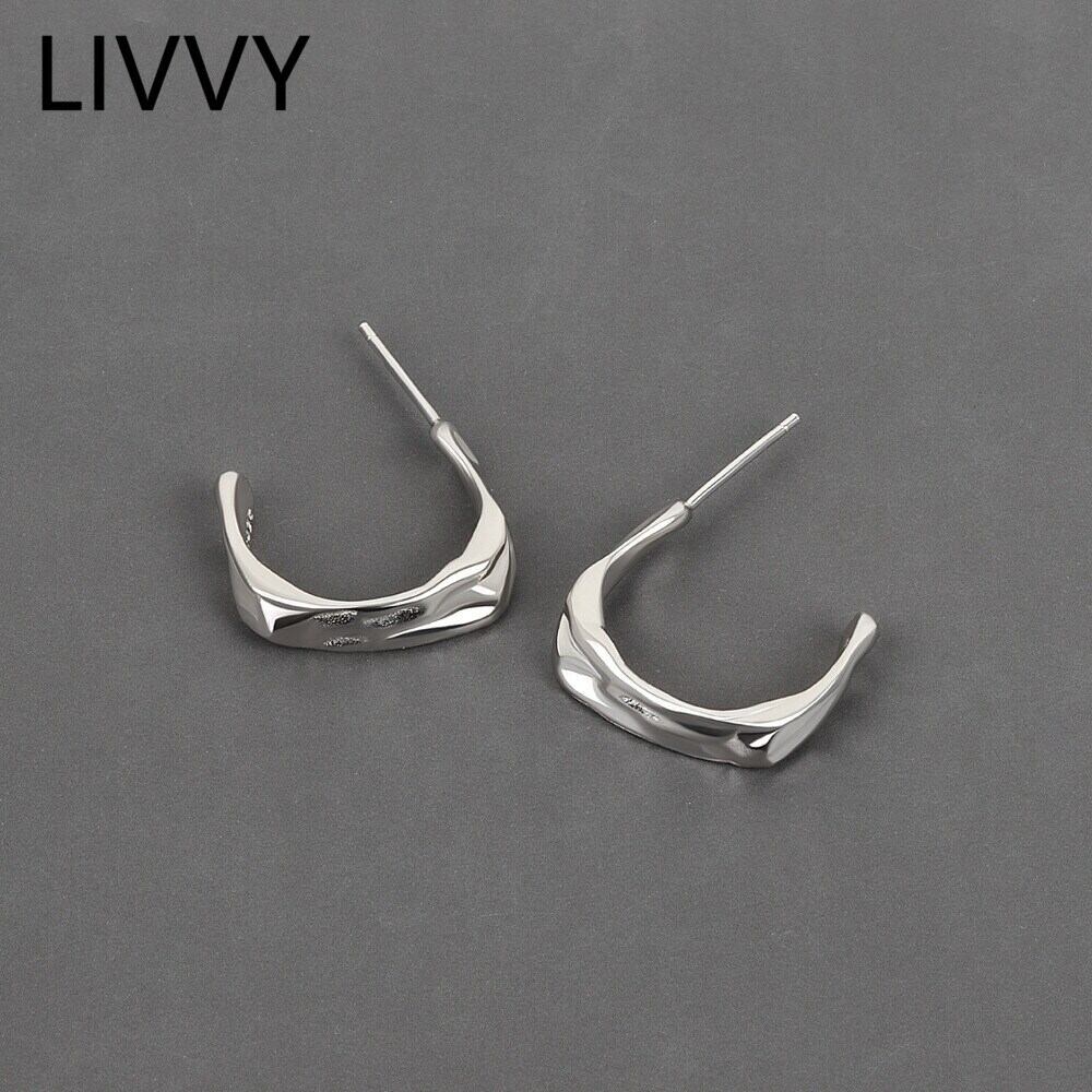 LIVVY シルバーカラー不規則な凹凸スタッドピアス女性ができる手作りのユニークなチャームジュエリーギフト イヤリング リング 指輪 銀 Liv94253096839