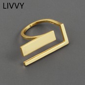LIVVY シルバーカラー長方形リング女性中空オープニング手作りシンプルなチャームジュエリー調節可能 アジャスタブル 指輪 銀 Liv13169220601
