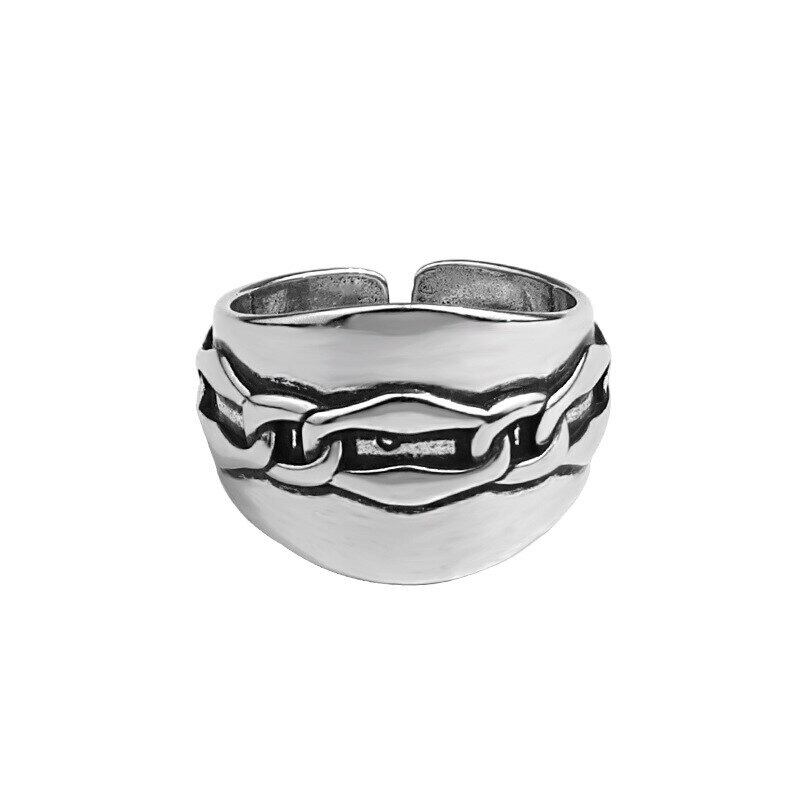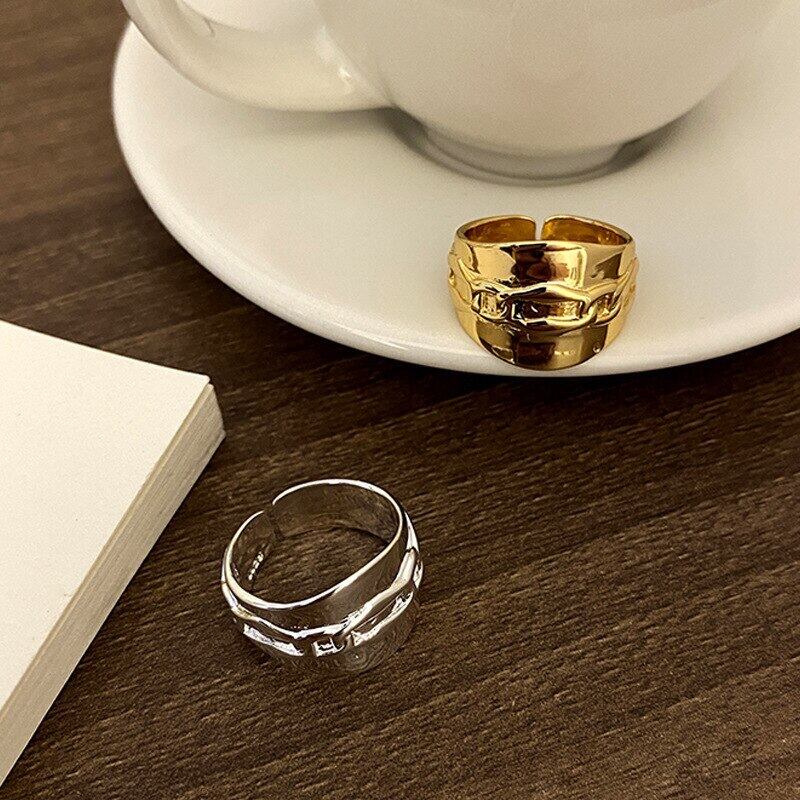 LIVVY シルバーカラートレンディな幾何学チェーンワイドリング女性の結婚式のカップルクリエイティブジュエリー調節可能 アジャスタブル 指輪 銀 Liv54002365115