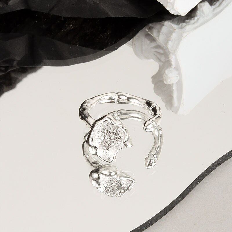 LIVVY シルバーカラー フラワーシェイプ ゴールドカラー リング レトロ オープニング ハンドメイド リング ファインジュエリー 2021 トレンド 指輪 フラワーデザイン 銀 Liv44496395547