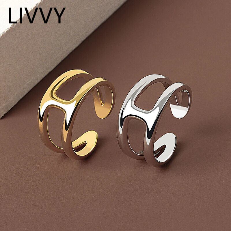 LIVVY シルバーカラーパーティーリング二層光沢リングジュエリー女性サイズ調整可能な 2021 トレンド アジャスタブル 指輪 銀 Liv88728224003
