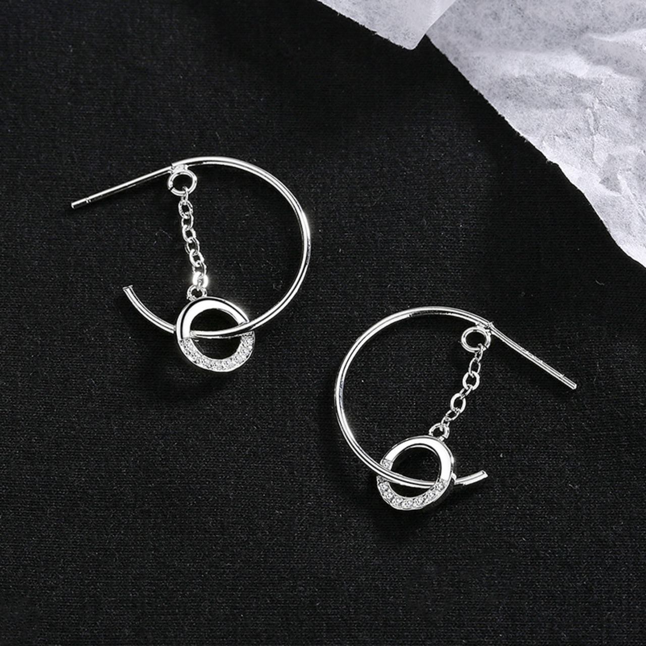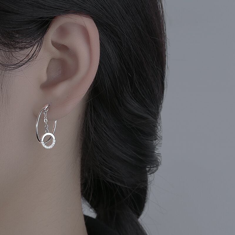 LIVVY シルバーカラークリエイティブ幾何学サークルジルコンイヤリング女性の高級トレンディエレガンス気質パーティージュエリー 指輪 銀 Liv39490261194