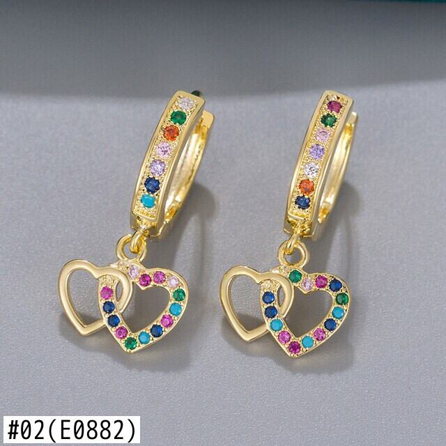 LIVVY 2021 ダブルハート接続ペンダントレインボーイヤリング女性 Gilrs カラフルなジルコンジュエリーアクセサリー 指輪 Liv73274895749
