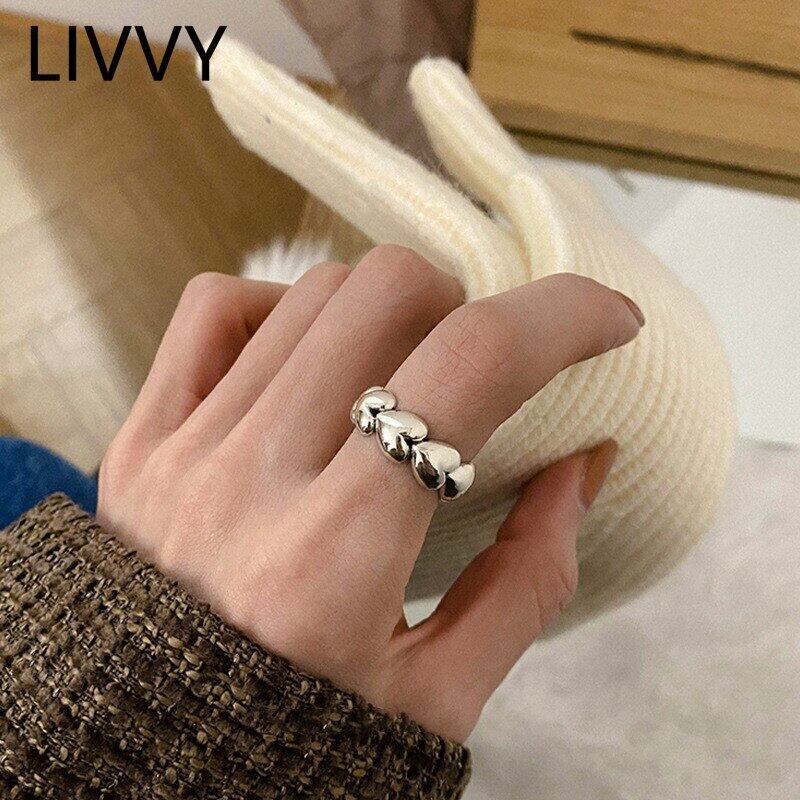 LIVVY シルバーカラーホットラブハートチェーンリング女性トレンドクリエイティブパーティージュエリーギフト 指輪 銀 Liv94308604086