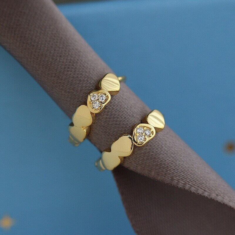 LIVVY シルバーカラー防止アレルギーラブハートジルコンフープイヤリング女性シンプルなパーティージュエリーアクセサリー 指輪 銀 Liv49697912590