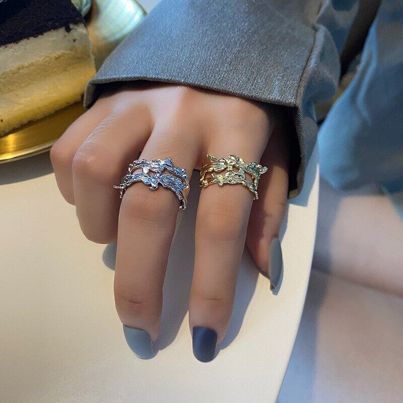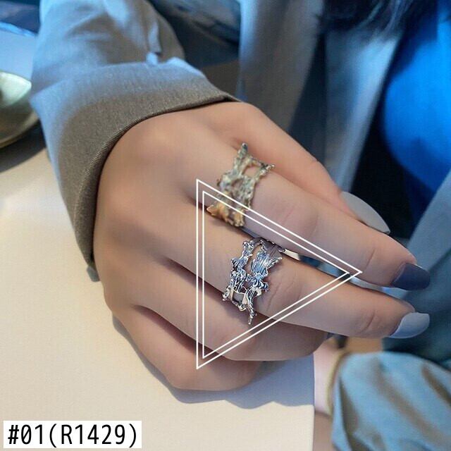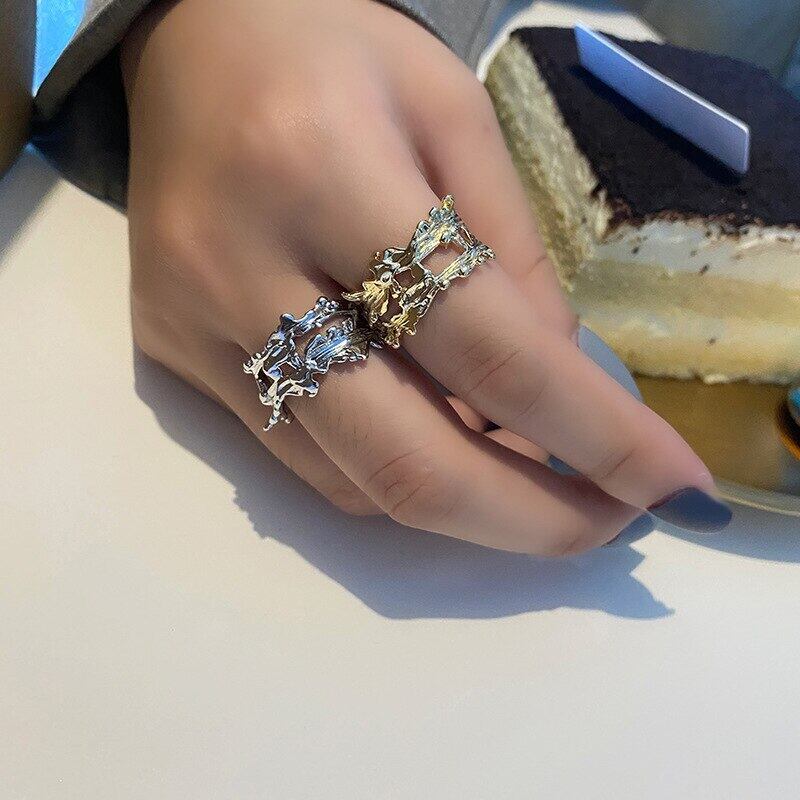 LIVVY シルバーカラーのトレンディなダブル中空アウト不規則な開口部調節可能なリング女性ジュエリーパーティーギフト アジャスタブル 指輪 銀 Liv60880311469