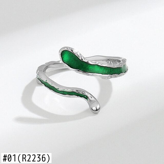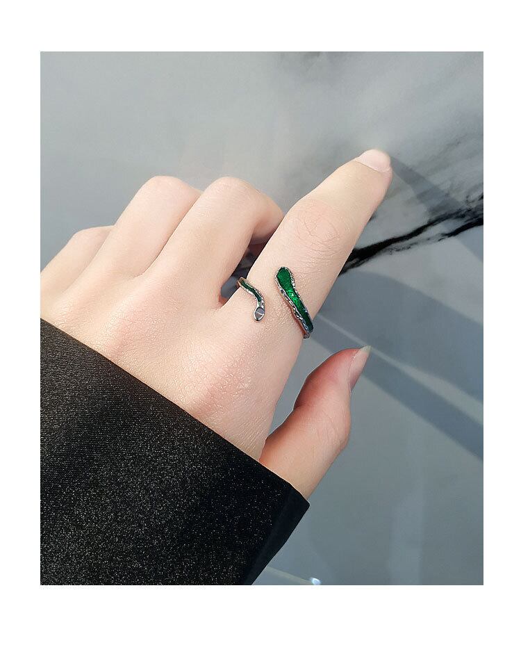 LIVVYSilver カラークリエイティブ不規則な幾何学グリーンスネーク調節可能なリングレディースメンズシンプルライトラグジュアリーパーティージュエリーギフト アジャスタブル 指輪 シルバー 銀 Liv42890559162