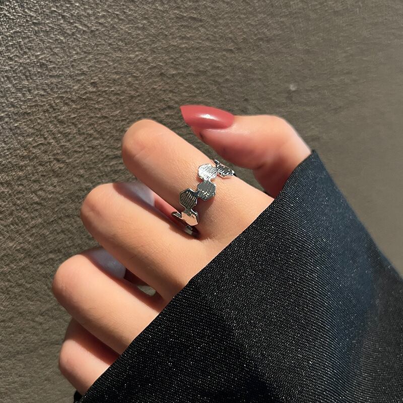 LIVVY シルバーカラー不規則な幾何学サークルステッチチャームリング女性のウェディングジュエリーギフト 指輪 銀 Liv90883303036