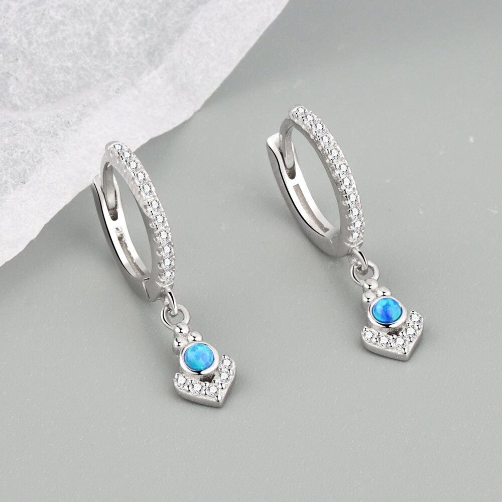 シルバーカラークリエイティブ幾何ブルージルコンショートペンダントイヤリング女性絶妙なジュエリー 指輪 銀 Liv4165099245