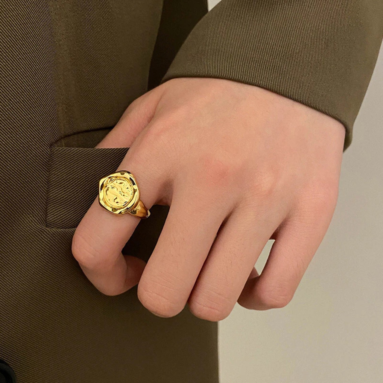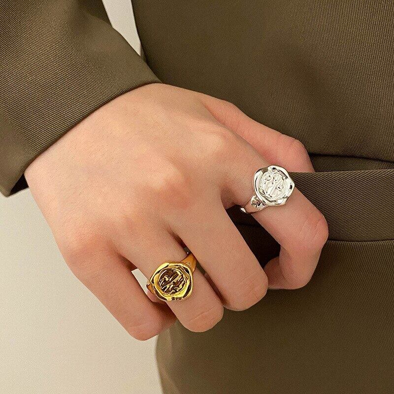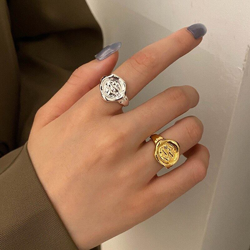LIVVY シルバーカラーのトレンディなクリエイティブ不規則なラウンド凹凸調節可能なリング女性のウェディングジュエリー アジャスタブル 指輪 銀 Liv10665092573