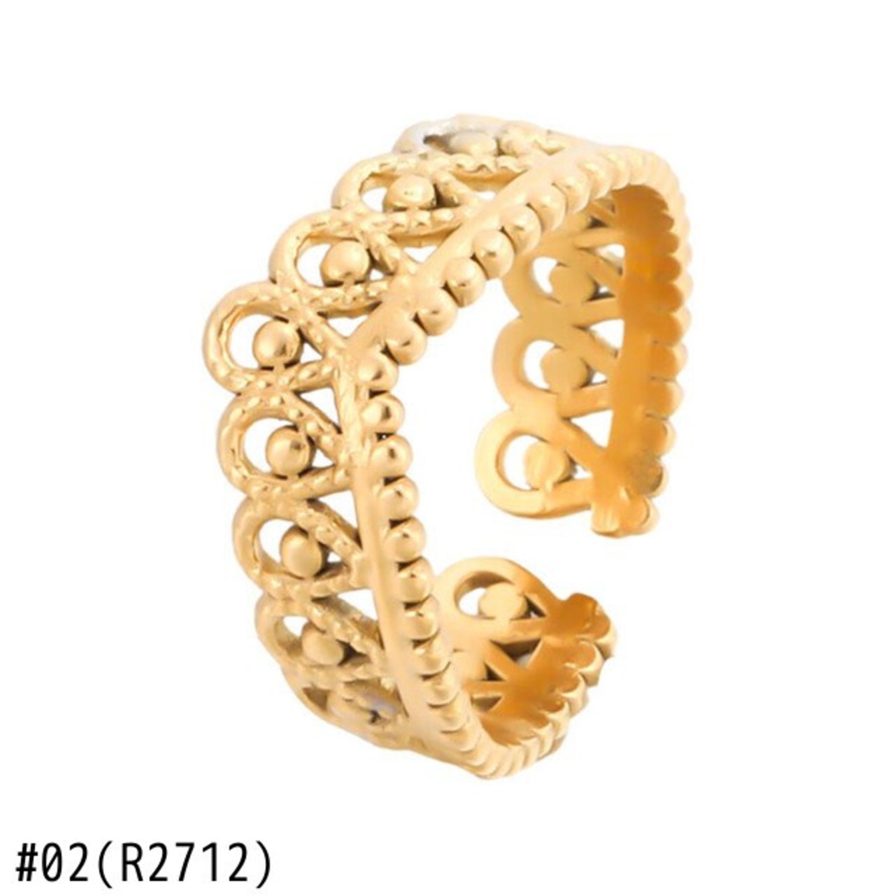LIVVY シルバーカラークラウンオープンワイドリング女性ガールジュエリーパーティーギフトトレンディなパンクリング 指輪 銀 Liv75902950868