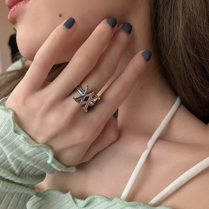 LIVVY 2022 ダブル V 字型クロス中空ワイドリング女性の創造性ゴージャスな指ジュエリーパーティーギフト 指輪 Liv50233649021