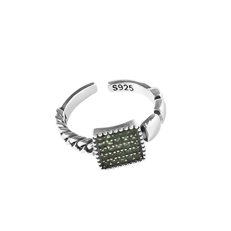 LIVVY シルバーカラートレンディグリーンブラックストーンジルコンリング女性の高級ジュエリーウェディングパーティーギフト 指輪 銀 Liv56482498480