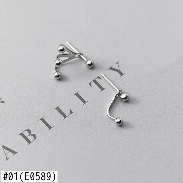 LIVVY シルバーカラーシンプル非対称ラウンドビーズ小さなスタッドピアス女性絶妙な手作りギフトジュエリー イヤリング リング 指輪 銀 Liv39831639980