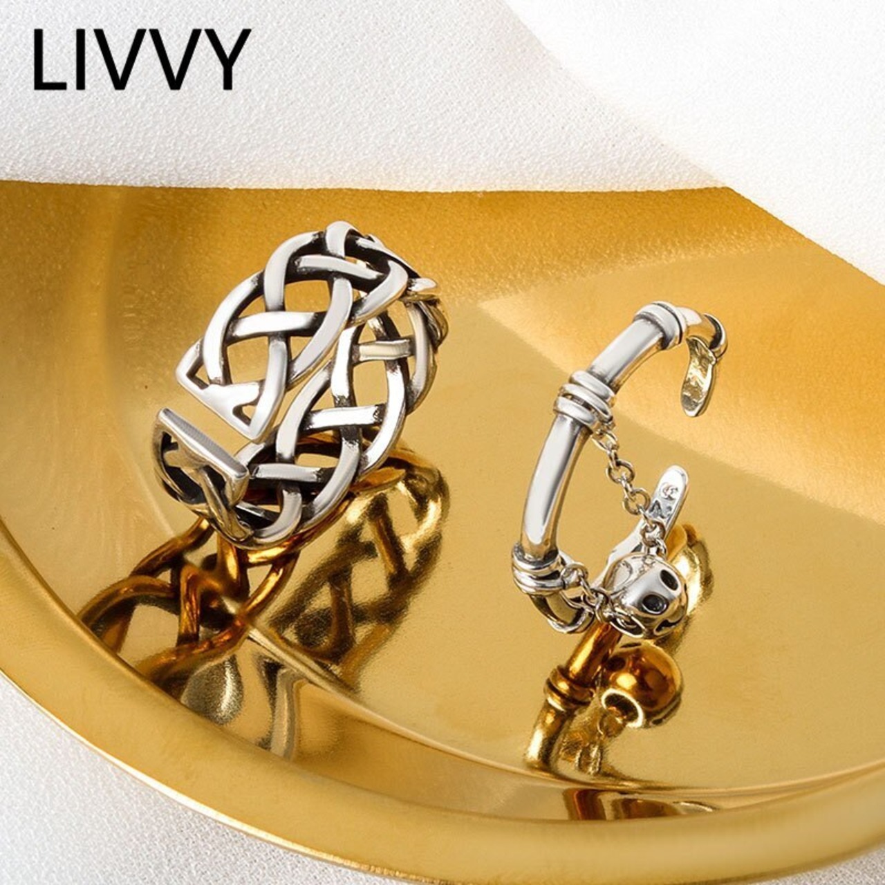 LIVVY タイシルバーカラーツイストウィーブリング tels ラウンド笑顔レトロオープニングジュエリーアクセサリー 指輪 銀 Liv35035904546