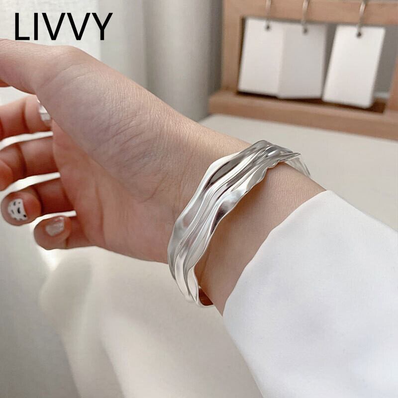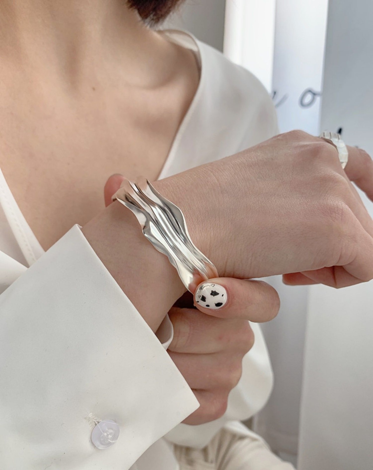 LIVVY 2021 シルバーカラー滑らかな不規則な折り目テクスチャブレスレット女性シンプルな手作りの絶妙なユニークなギフト 銀 Liv98742672609