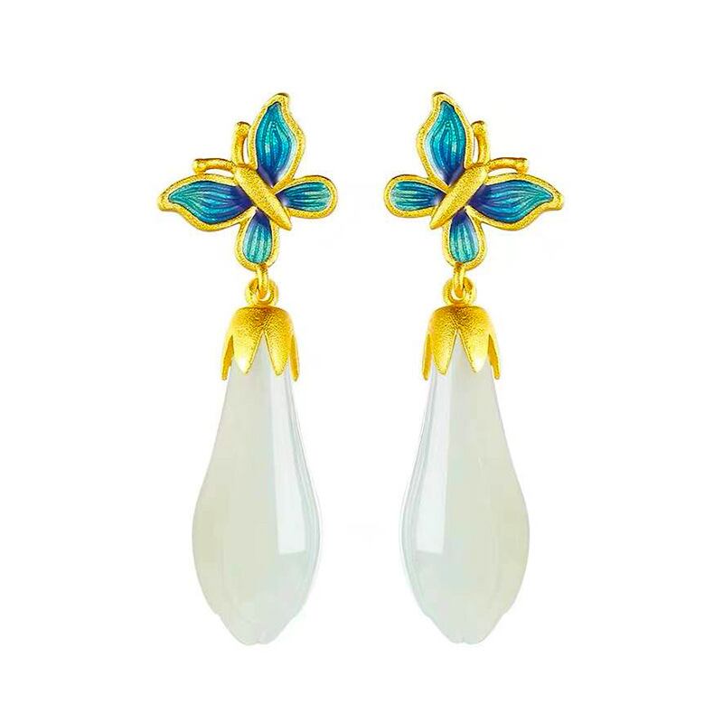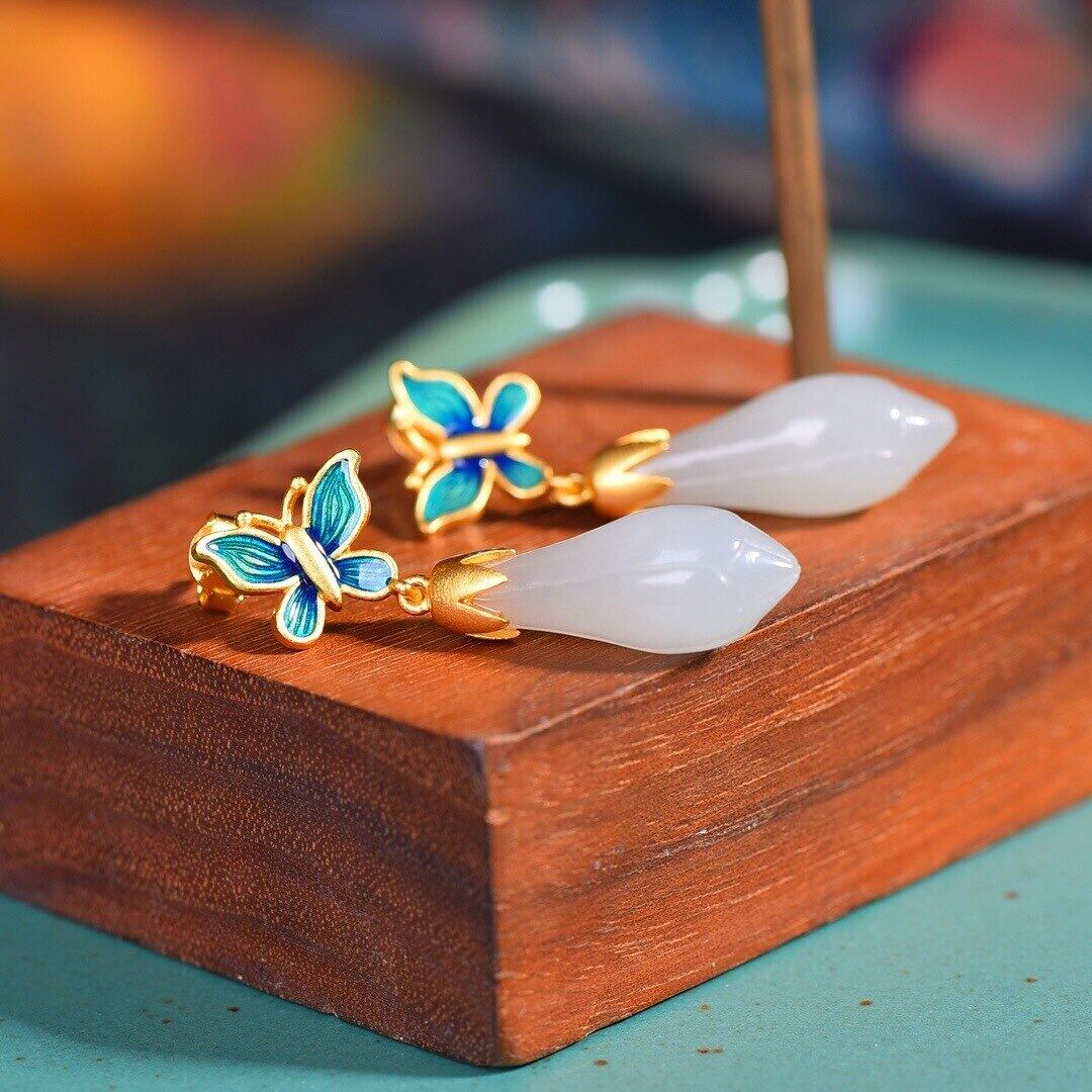 LIVVY シルバーカラー レトロ 天然石 フラワー バタフライ イヤリング レディース アニバーサリー ジュエリー ギフト ナチュラル 指輪 フラワーデザイン 銀 Liv70408299434