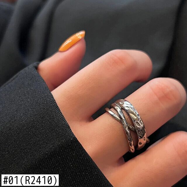 LIVVY シルバーカラーパンクヒップホップクリエイティブ幾何学中空リング女性多層クロスパーティージュエリーギフト 指輪 銀 Liv80288826487