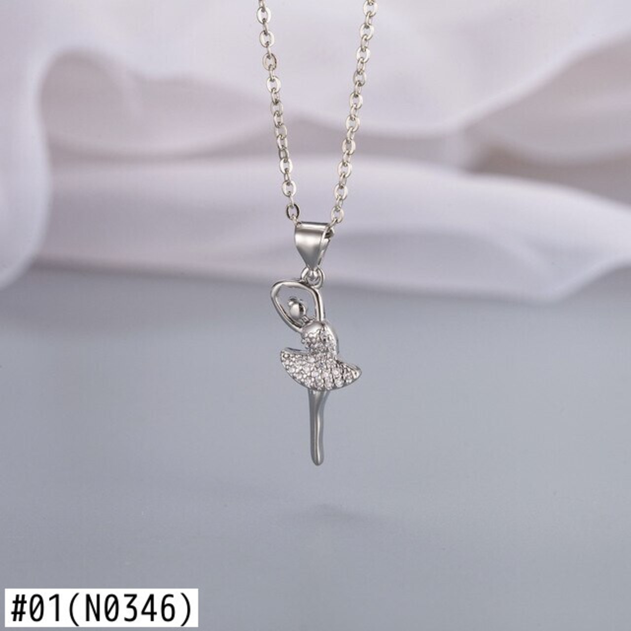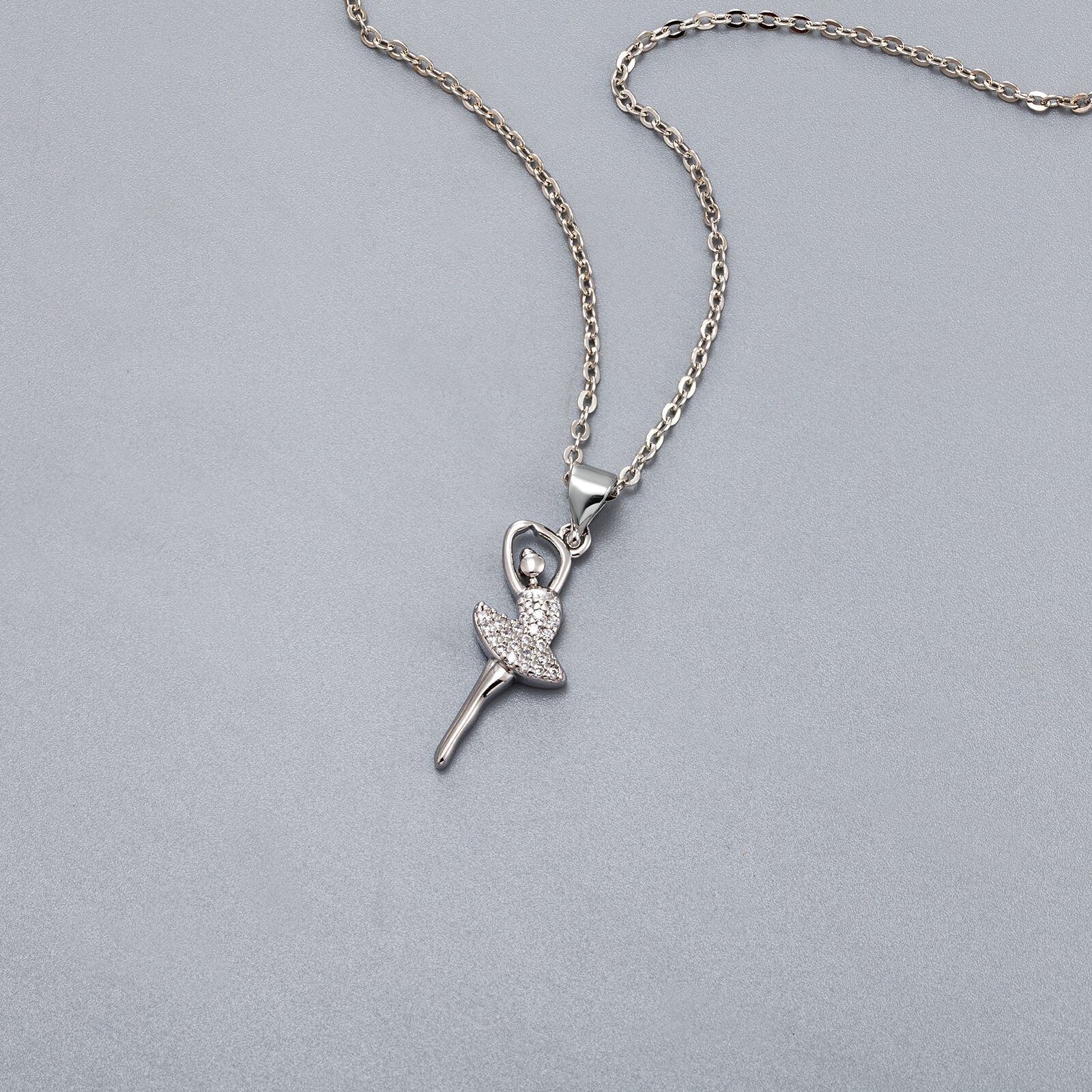 LIVVY シルバーカラースウィートジルコンダンスバレリーナバレエダンサーペンダントネックレス女性ガールズチャームジュエリーギフト レース 大人ガーリー キュート カジュアル 銀 Liv15191711378