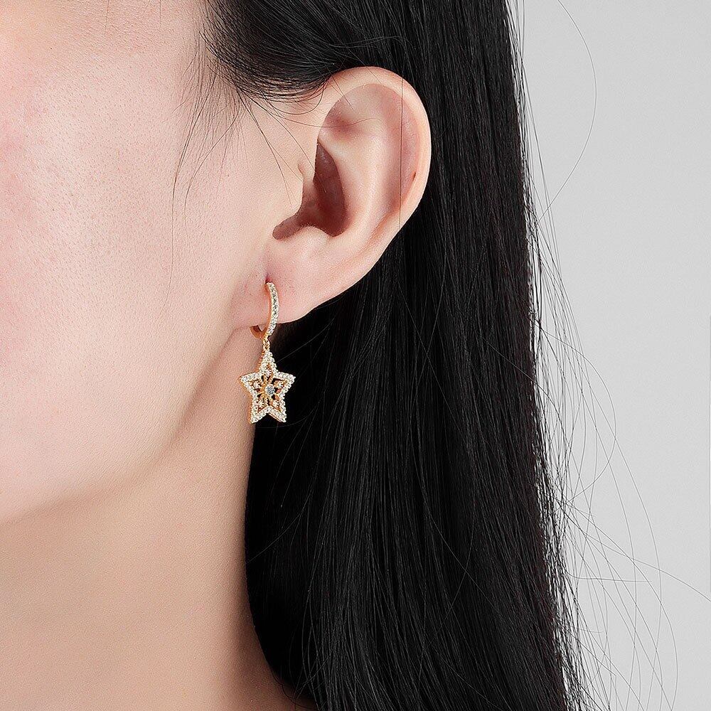 LIVVY シルバーカラー中空スタージルコンペンダントイヤリング女性ライト高級トレンディな気質パーティージュエリー 指輪 銀 Liv1860930362