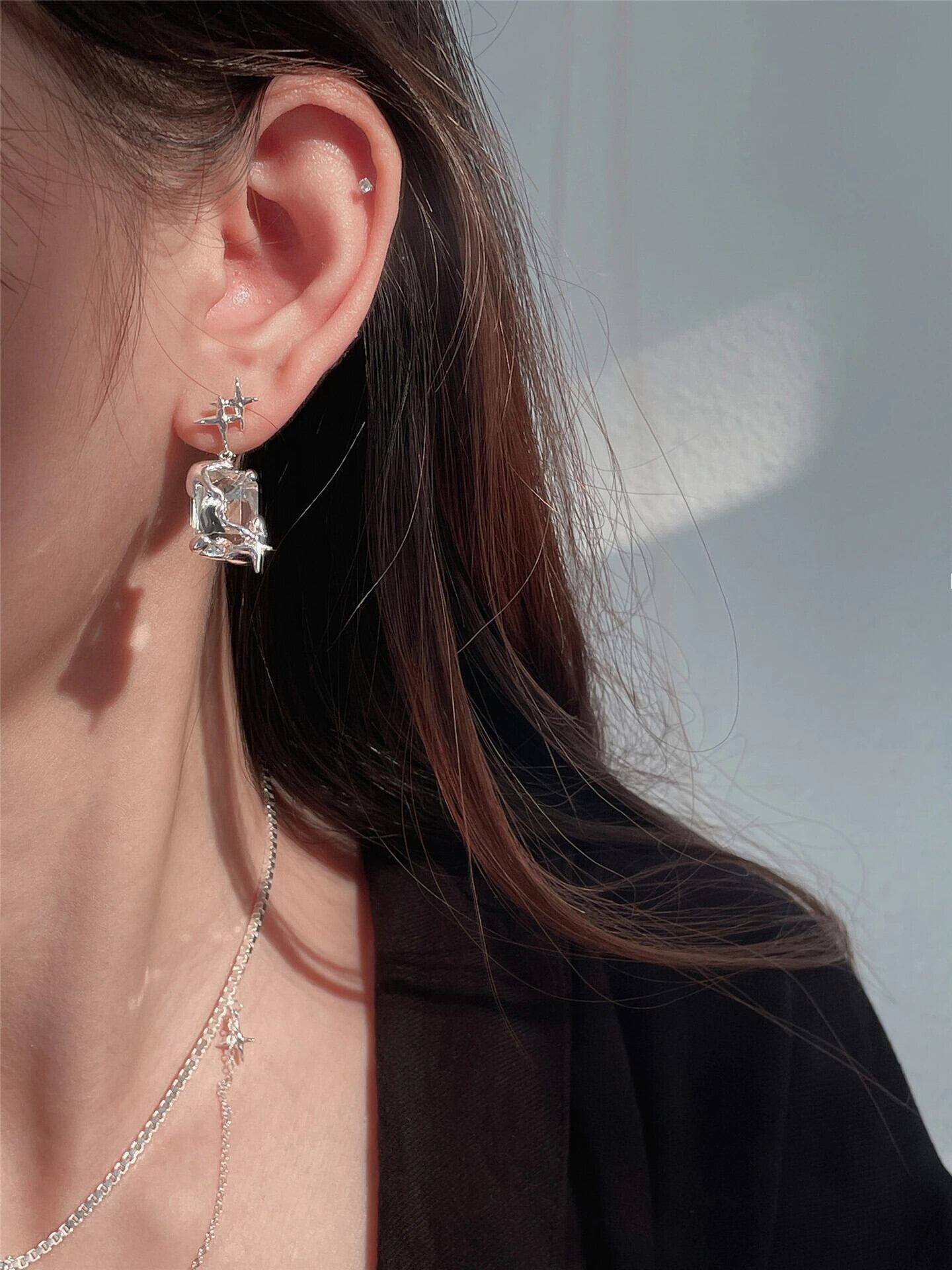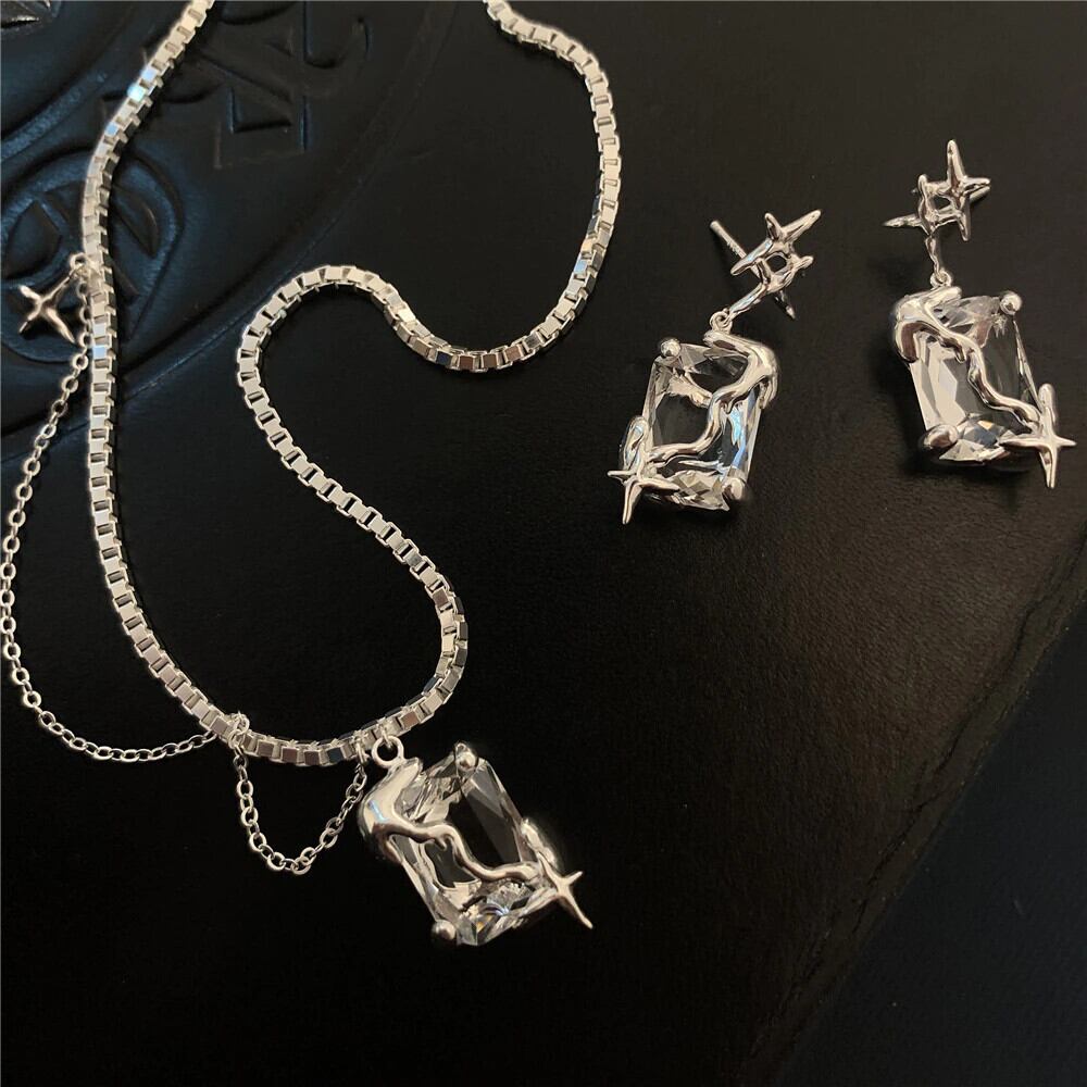 LIVVY シルバーカラースパークリングジルコンペンダントイヤリング花嫁ジュエリー女性トレンディなウェディングパーティーアクセサリー 指輪 銀 Liv93071415866