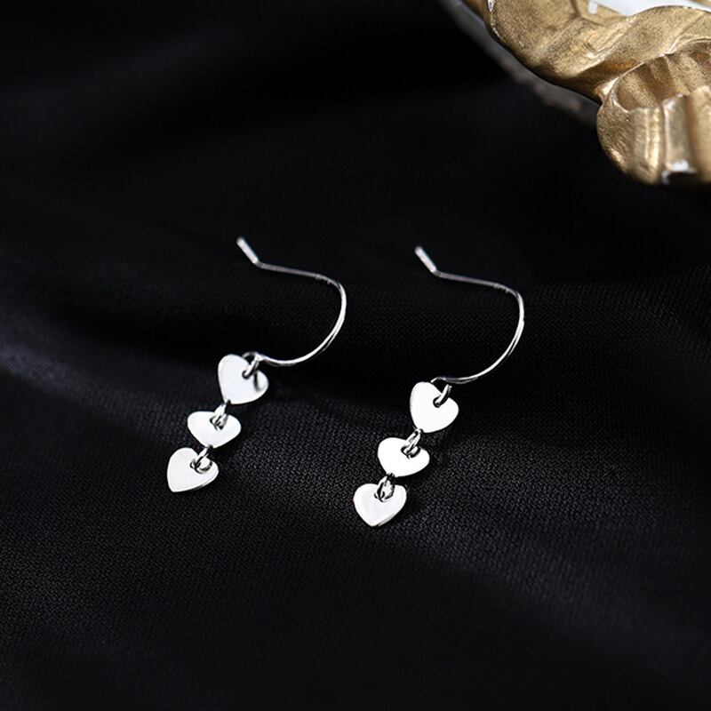 LIVVY シルバーカラートレンディな愛のハートチェーン Tel イヤリング女性シンプルなウェディングジュエリー防止アレルギー 銀 Liv13646786897