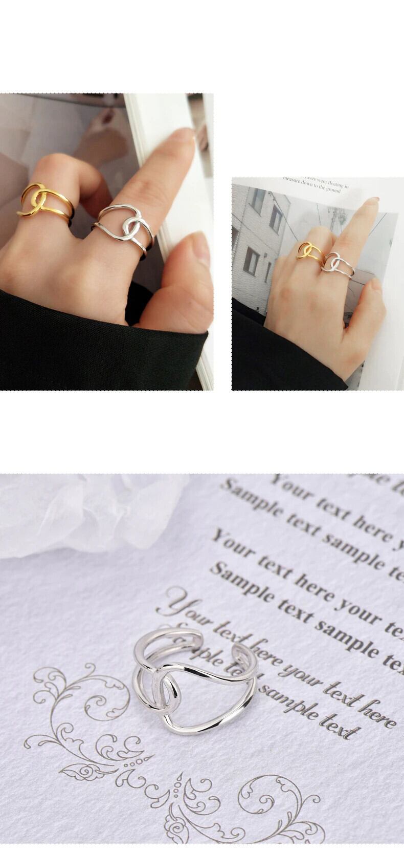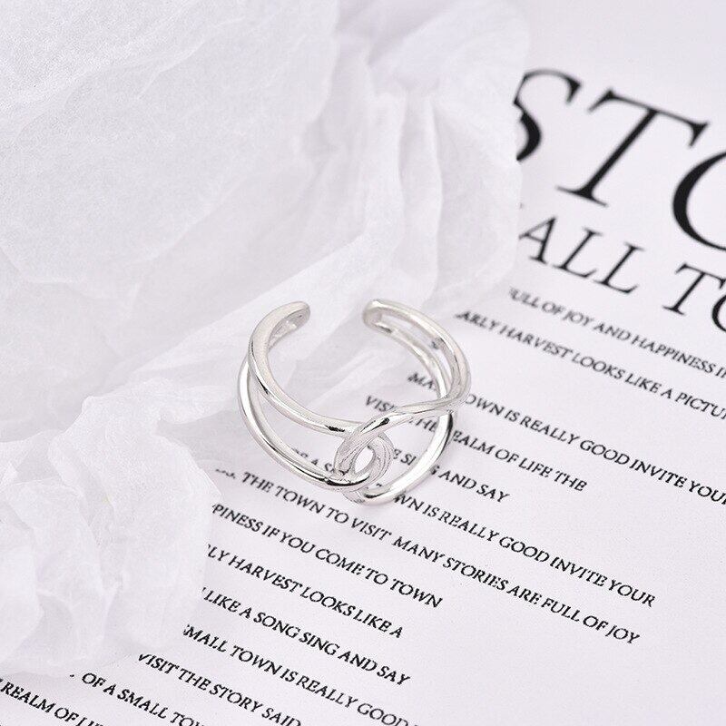 LIVVY 2021トレンドシルバーカラーヨーロピアンラウンド交差リングレトロタイドフローオープンリング 指輪 銀 Liv83661111504