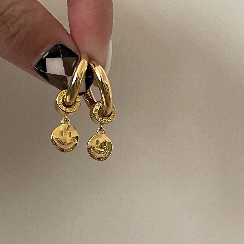 LIVVY 防止アレルギー中空スマイリーイヤリング女性カップルシンプルなショートパーティージュエリー耳バックルギフト 指輪 Liv8874175629