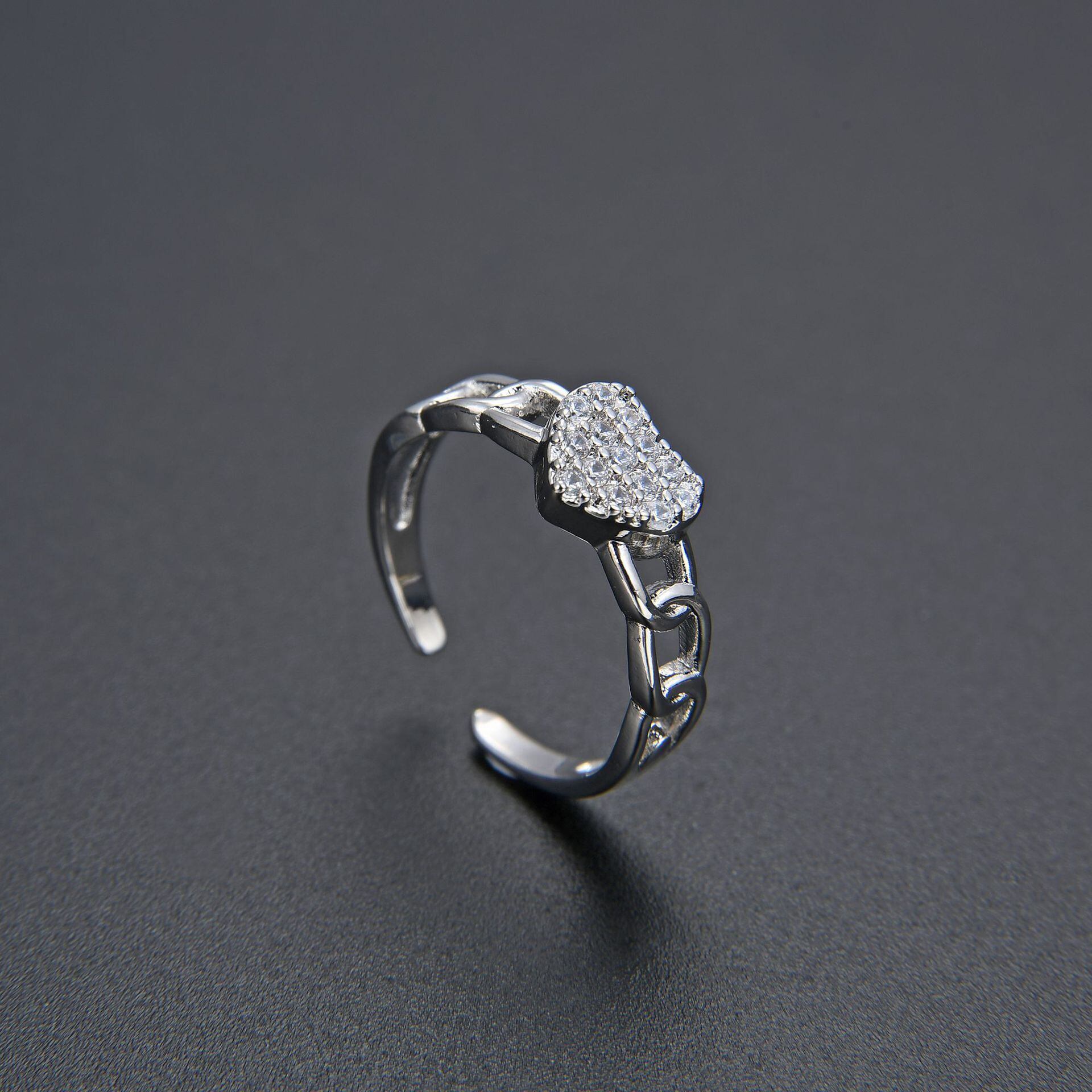 LIVVY シルバーカラーの幾何学チェーンラブハートジルコン調節可能なリング女性シンプルな花嫁のジュエリー アジャスタブル 指輪 銀 Liv59803437122