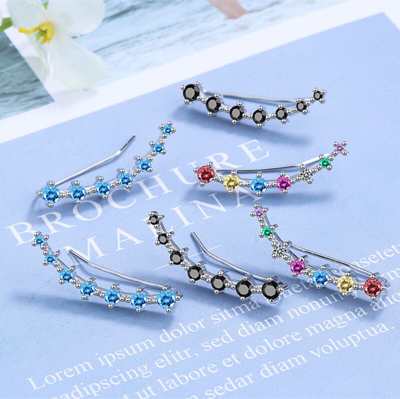 LIVVY シルバーカラー クリエイティブ カラフル ジルコン イヤリング レディース シンプル 絶妙 ジュエリー 銀 Liv93737816344