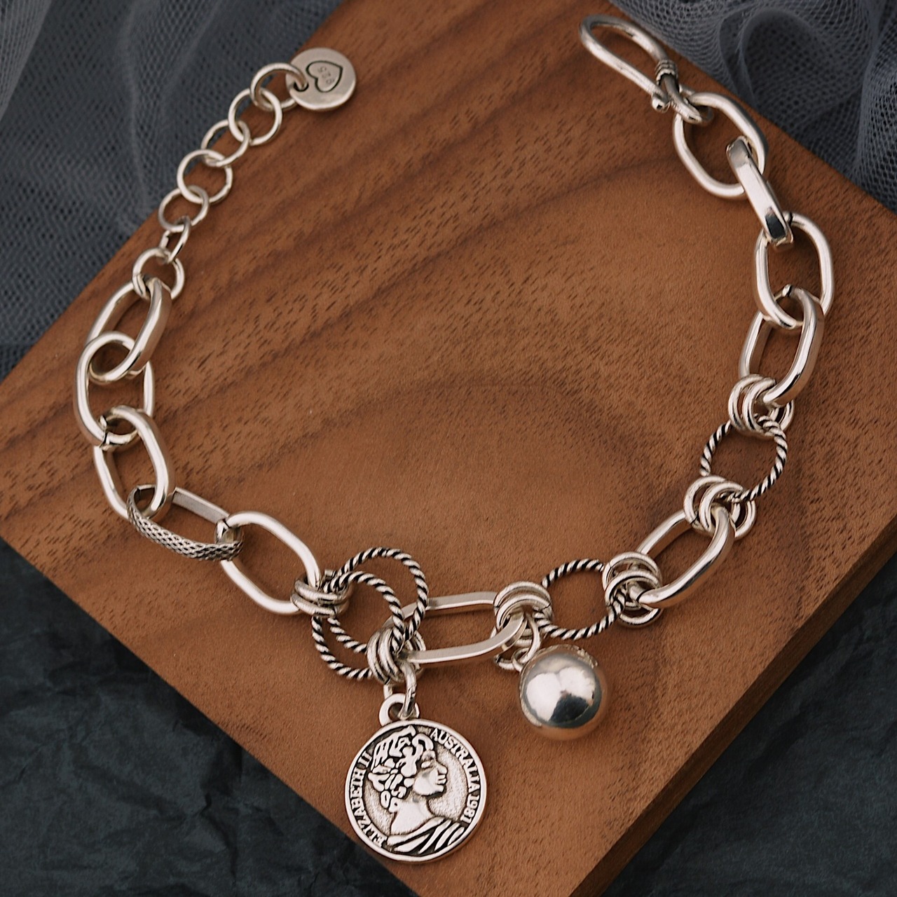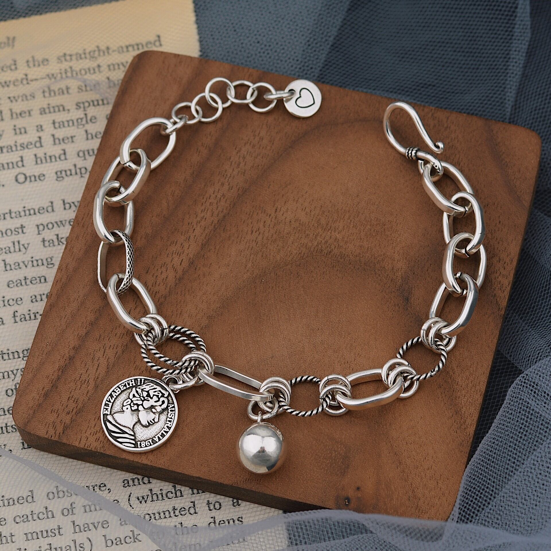 LIVVY タイシルバーカラーパンクチェーン Brcacelet 女性の夏のトレンディな肖像ペンダント手作りパーティージュエリー サマー 夏物 銀 Liv53234130031