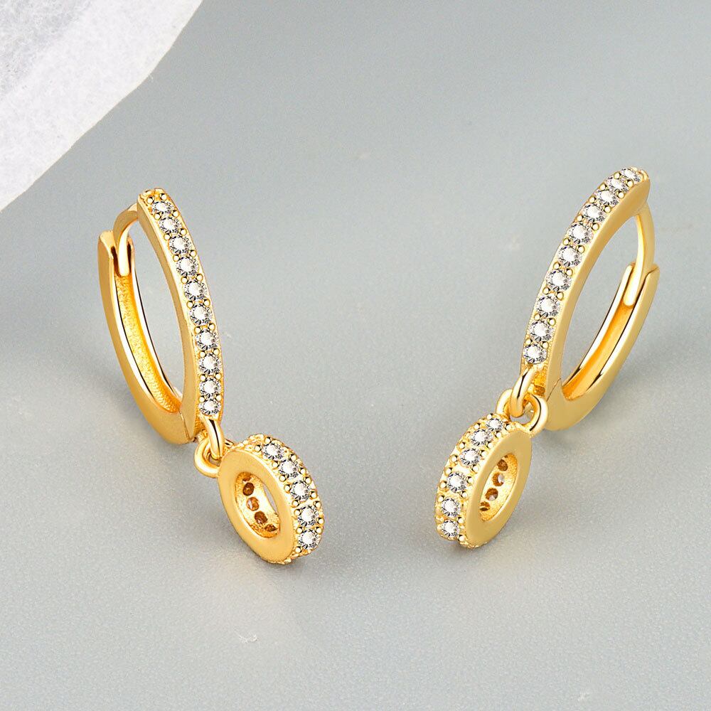 LIVVY トレンディなスパークリングジルコン中空アウトラウンドイヤリング女性ユニークなチャーム花嫁パーティージュエリー 指輪 Liv10328455868
