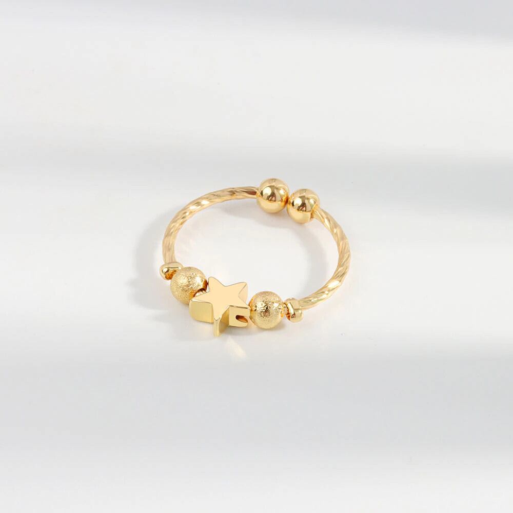 LIVVY 2021 シルバーカラー回転自由にラウンドビーズ星形オープン調節可能なリング女性男性ジュエリーギフト アジャスタブル 指輪 銀 Liv99058477024