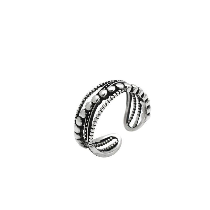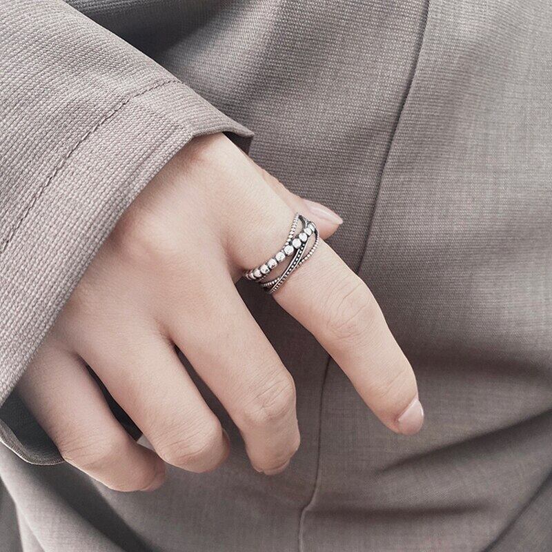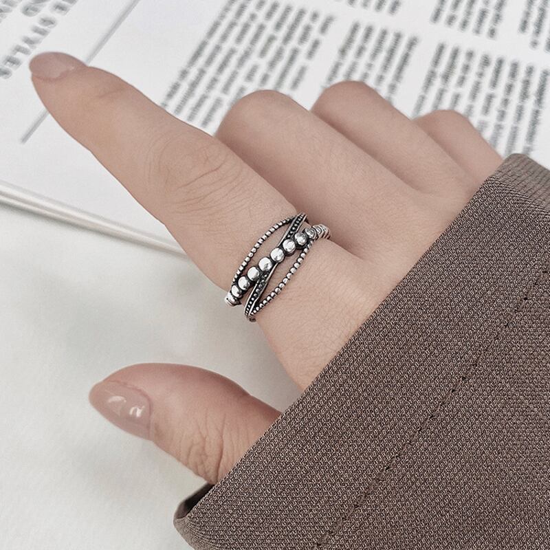 LIVVY タイシルバーカラーリング多層ドットチェーンクロスヴィンテージリング薄型幾何指リング女性ジュエリー マルチレイヤー 指輪 銀 ビンテージ Liv90627736320